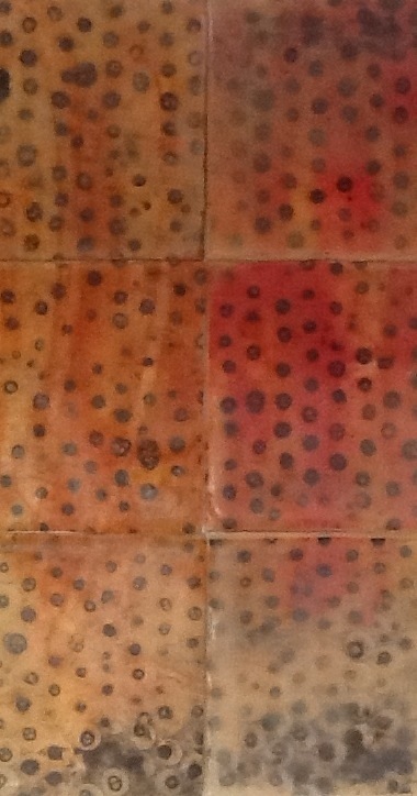 About one third of my tiles coated with encaustic medium, a blank canvas for an image.