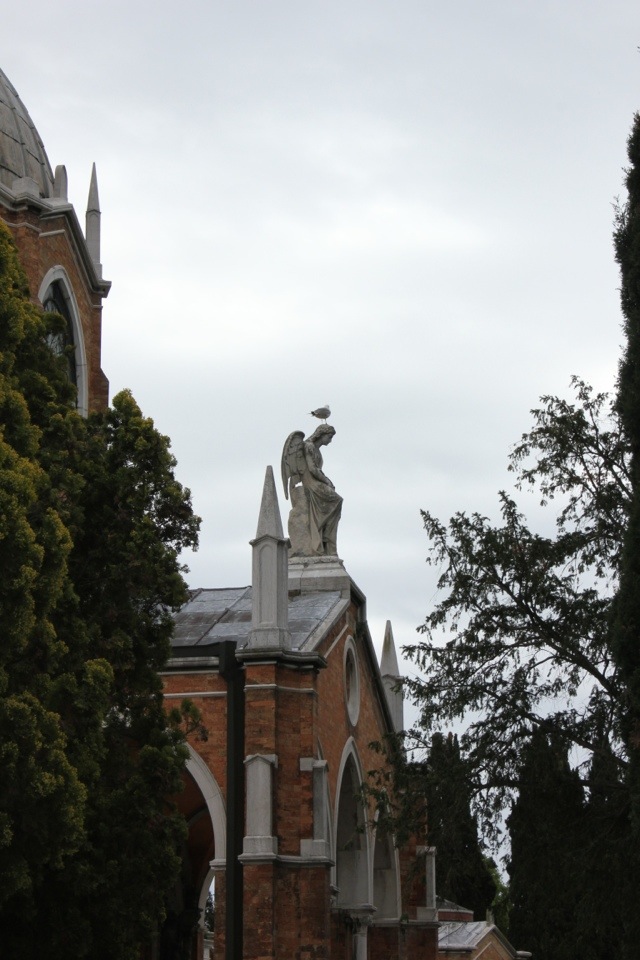 On the way to Murano, we called in at Cimitero to visit the graves of Nijinsky and Stravinsky. The citizens of Venice can be buried here for a maximum of ten years only, unless they happen to be famous. After that, the graves are relocated to somewhere on the mainland, where it is less crowded. The cemetery has its own island, half way between Murano and Fondamenta Nove. The dark shapes of the many cypresses which dot this island pierce the skyline.