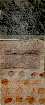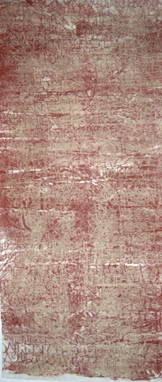 These works are from the series Text. They are transfer monotypes on rice paper using both Akua Color and Charbonnel inks.They are 59cm wide by 1300 High.