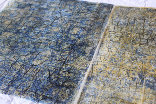 I know its been Christmas, but I have a lot of things happening next year, so I need to keep working when I can! Today I had a very productive day, working with monotypes made with Akua Color ink on fine tissue papers and encaustic medium. These works are meant to be viewed as pairs.