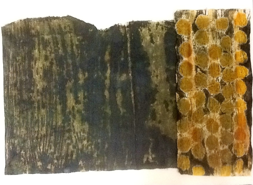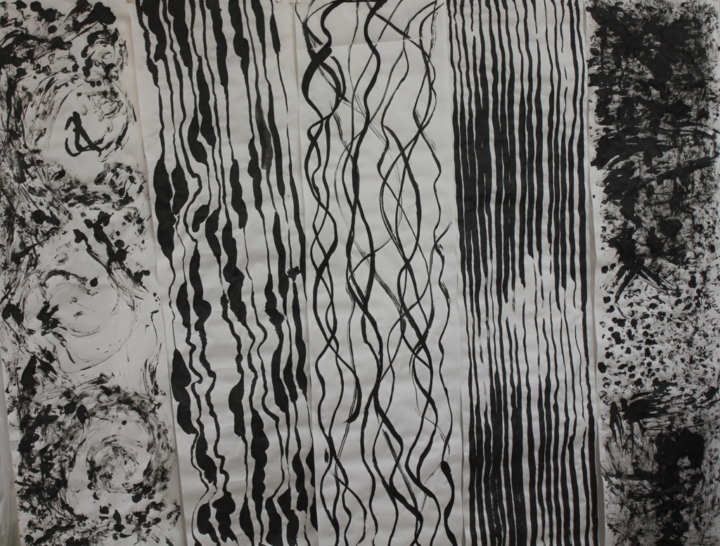 Yesterday was the first day of Paula’s workshop. We began by making long scroll forms using brush and ink. Firstly we followed our breath, and then we used our gloved hands to work on the surface. iIt was a very direct and intimate way of making marks on the surface of the paper.
