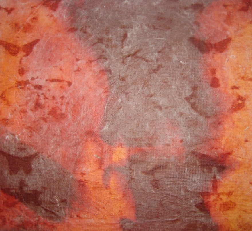 Monoprint from brain scans, polymer intaglio and relief on tissue paper.Some years ago, I made a series of prints based on x-rays and scans of the body. X-rays have a kind of bloom on the surface which carries fingerprints and scars from being handled by doctor and patient. They seemed to me to be beautiful – the ghostly image, the passages of darkness and light – and the surface seemed to me to carry a message about what people were feeling about their bodies, their hopes and fears. As I explored these images I noticed a texture of fine striations of darkness and light, which looked like the weave of a fabric. Noticing the way wet ink often transferred to tissue paper laid between newly made prints, I developed a printing process which layered imagery on transparent papers onto the base print. This produced subtle colour shifts, and allowed for a lot of compositional experimentation.