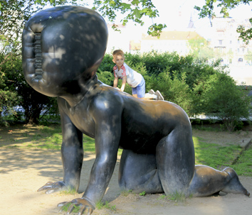This sculpture has proved to have the same shock value of some of his pieces; when Viselec was displayed in Grand Rapids, Michigan in the U.S., many panicked phone calls were placed as the people thought the sculpture was someone attempting suicide. Created in 1997, the tiny figure of Sigmund Freud, who hangs by his right arm and has the hand of the other in his left pocket, is said to reflect Černý’s thoughts about the role the intellectual would play in the new millennium. Located on Husova street near Betlémské náměstí, the bearded figure has made the rounds to Malá Strana, Berlin, Stockholm, and London.