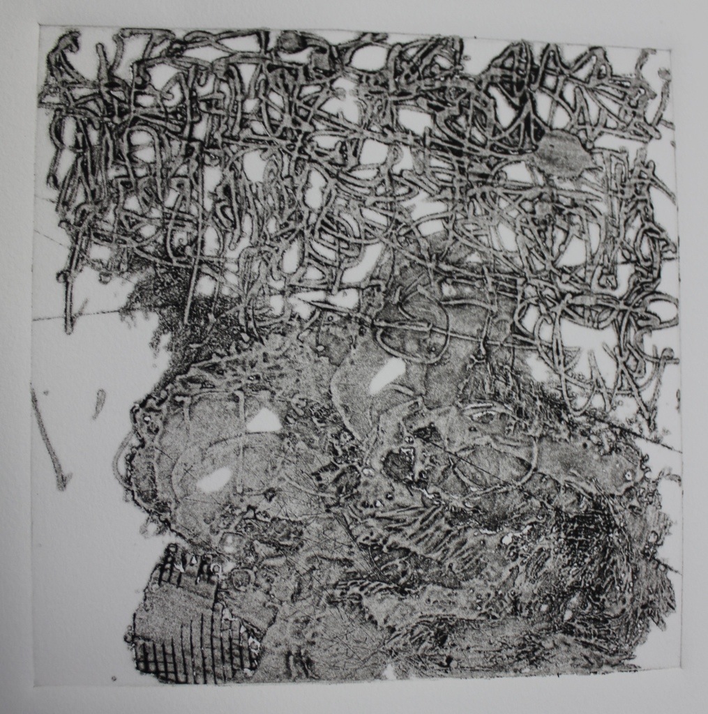 I’m really enjoying the contemplative process of making these works. This one combines burnt paper with a print taken in ink from that paper, and some coloured pencil. However, soon I’ll be seeing holes in my sleep!