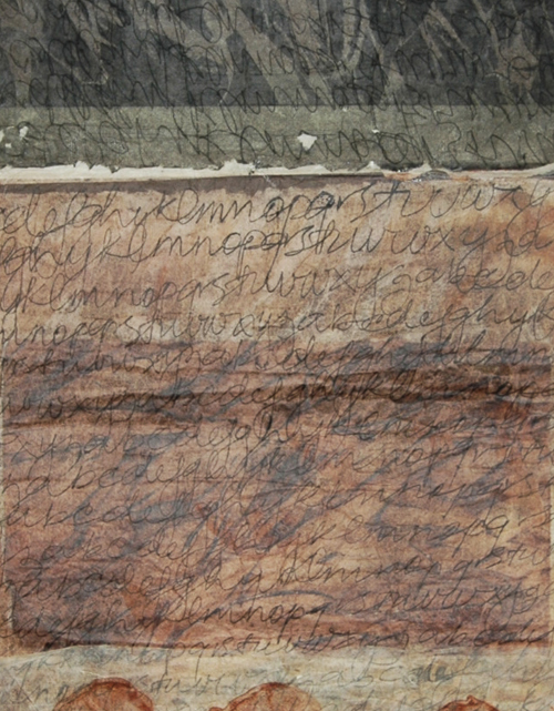 Here are a couple of details from works in the series, so you can see the texture of the paper. To see the full image, go to the printmaking page of the blog.