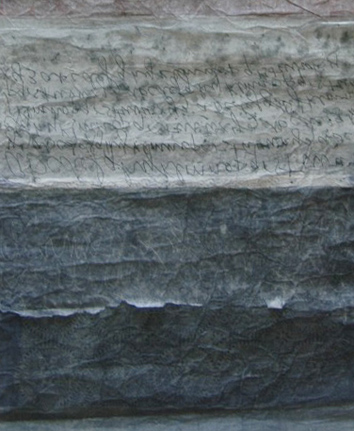 Unframed, they float, and move with the air currents. They appear very delicate, but are actually strong. These works dealt with the colonisation of Australia and the displacement of Aboriginal culture, which had no written language, so I began to introduce text.